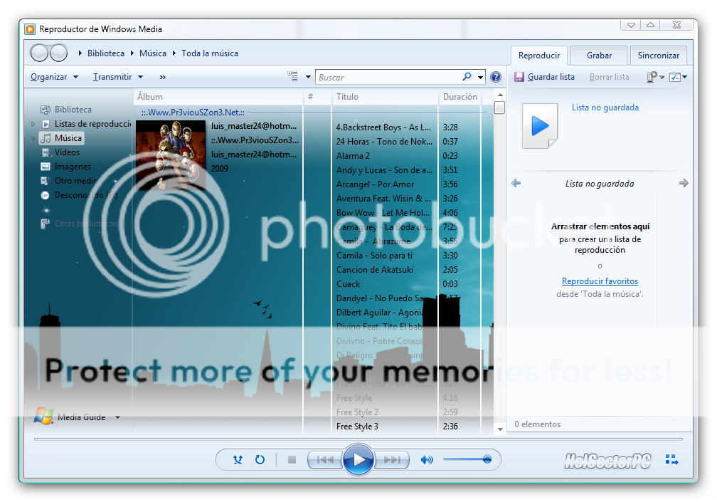 Para usarla tenemos que antes cerrar WMP12, hecho eso podemos elegir entre 5 imágenes que vienen por defecto, o seleccionar una desde un archivo. También hay un botón para elegir directamente el wallpaper de escritorio como fondo de WMP12. Y si nos ponemos minimalistas incluso es posible dejar a Media Player sin ningún fondo, sólo un degradado celeste en los bordes que es parte de su interfaz.